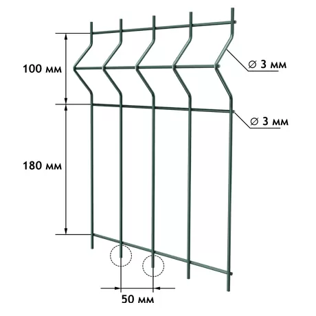 Изготовление из оцинкованной проволоки с формированием 3D-секций с ребрами жесткости. |