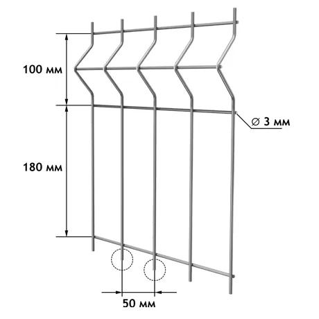 | ZINC-perimetr | 1730 | 2500 | 3,0 | 100 мм (2 изгиба) | Горячее цинкование (1 класс) | Без окраски | Временные ограждения, внутреннее зонирование |
